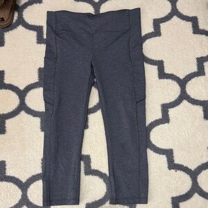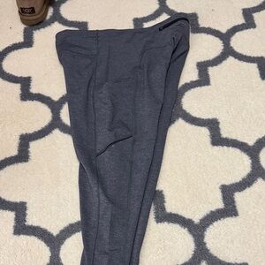 Stylish gray leggings with practical side pockets. Perfect for workouts or casual wear.