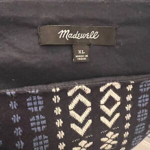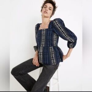XL Madewell Blue and White Geometric Peplum Top