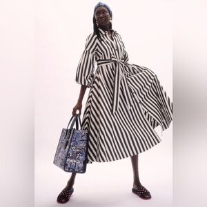 Kate Spade Women’s Terrace Stripe Dress Black White Button Down Poplin Size S