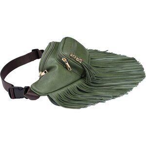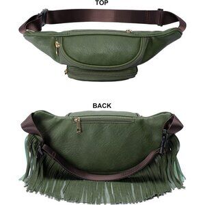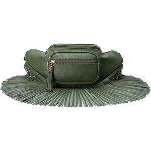 💫 Women Green Fringe Multi Zipper Pockets Trendy Style Casual Wear Waist bag