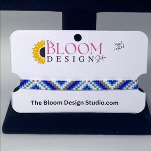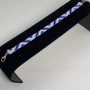 Elegant handcrafted bracelet with intricate blue and white beadwork. Ideal for any style.