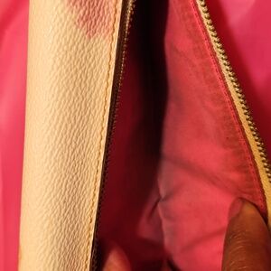 Elegant Coach wallet in a beautiful cream color with floral accents. Perfect for adding a touch of sophistication to your style.