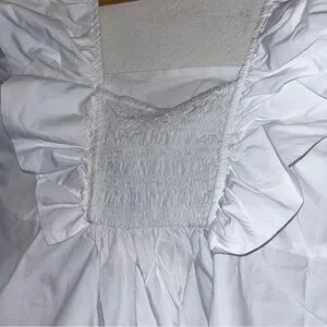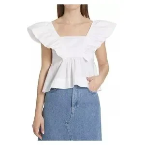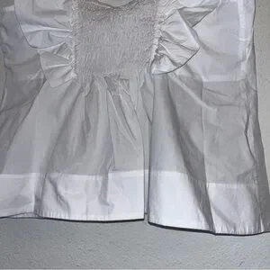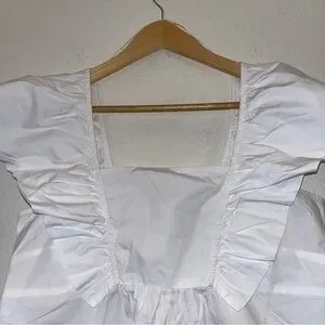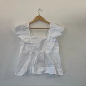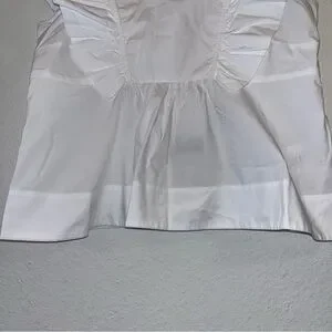 Elegant white top with ruffle sleeves. Square neckline. Perfect for casual or dressy occasions.
