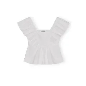Ganni White Ruffle Sleeve Top
