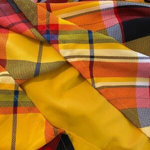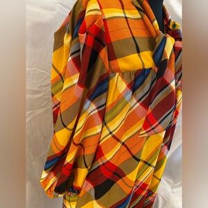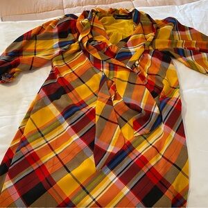 Vibrant plaid dress with a bold bow-tie accent. Ideal for stylish outings.