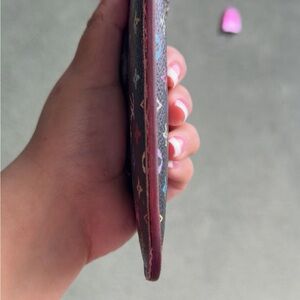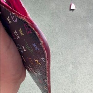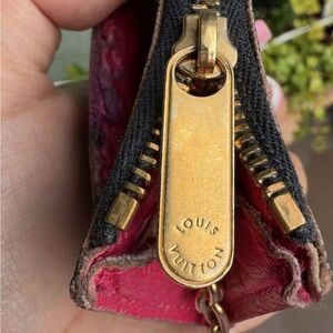 Chic Louis Vuitton pouch with vibrant monogram on black. Gold-tone chain and clasp.