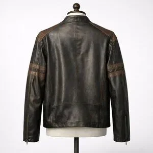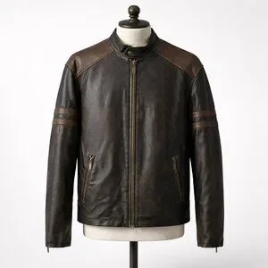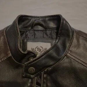 Keywords: Toxic Hazard jacket, men’s moto jacket, distressed faux leather jacket, brown biker jacket, rugged men’s outerwear
