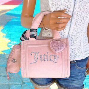 Juicy Couture Big Spender Pink Mini Tote Bag w/Barrel Wristlet & Heart Bag Charm