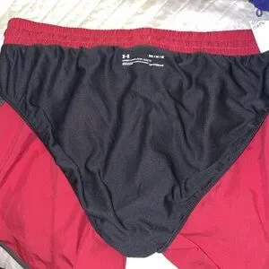 Experience ultimate comfort and style with these Under Armour athletic shorts, featuring a striking red and black color combination. Designed for performance, they offer a loose fit with an elastic waistband and lightweight material, perfect for any workout session.