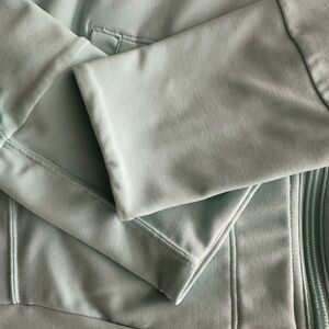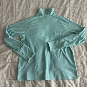 In excellent preowned condition. This NIKE got dry jacket in baby blue. Sleeves are longer with thumb holes.
