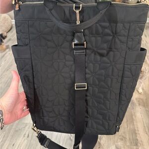 Kate Spade work tote, convertible tote with gold hardware. Fits up to a 15in Apple MacBook inside the padded slot. Lots of pockets for extra needs as well. Stylish and versatile black quilted bag for women. Perfect for everyday use. Only used a few weeks.