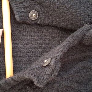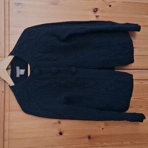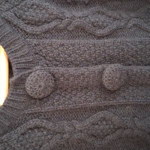 In great condition. Chunky cable knit with covered buttons. 3 button closure open at bottom for that Y2K look.