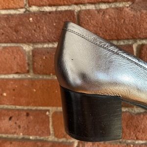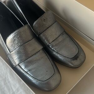 MARC FISHER LTD Leather Hudson Silver Loafers, 7.5
