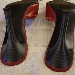 BCBG Paris Red 4.25" Mule Heels with Bow Accent - Size 10
