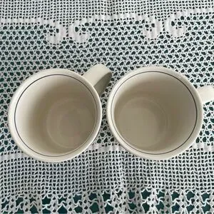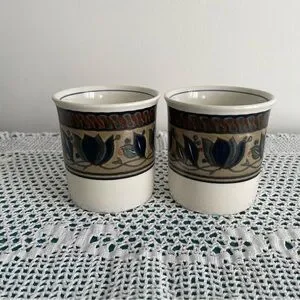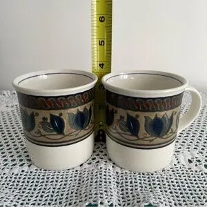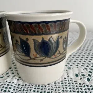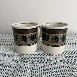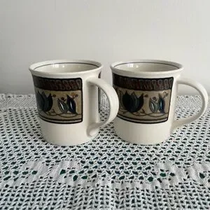 Mikasa Cream and Navy Leaf Design Mugs Arabella Collection