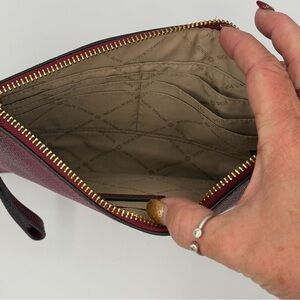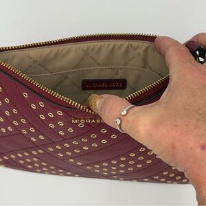 Michael Kors Jet Set Travel XL Zip Stud Clutch Wristlet Pebbled Leather Mulberry