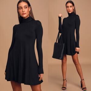 Lulus Black Sway Girl Sway Swing Turtleneck Mini Dress Long Sleeve Jersey Small
