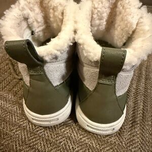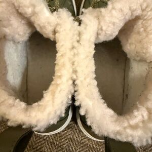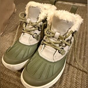 Great condition. Worn a few times but just don’t love them for what I wanted. Sherpa lining, green laces. They fit a bit snug, I’m a 7 and had to order an 8.