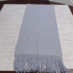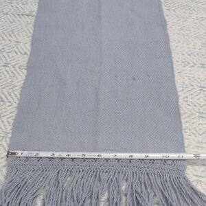 This elegant gray scarf features a stylish fringe design, perfect for adding a touch of sophistication to any outfit.