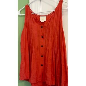 Maeve Anthropologie Orange Pleated Button Front Tank Top Women US 6