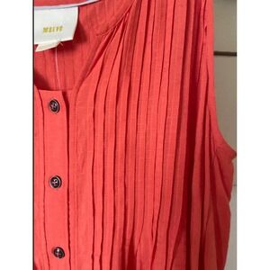 Keywords: Anthropologie, pleated, button front, sleeveless, vibrant, boho, feminine, casual, summer, lightweight, trendy, chic, everyday