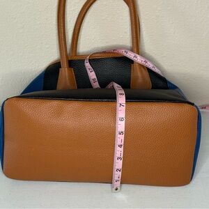 Neiman Marcus Tote Bag Tri-color Camel Brown, Black & Blue Vegan Pebble Leather