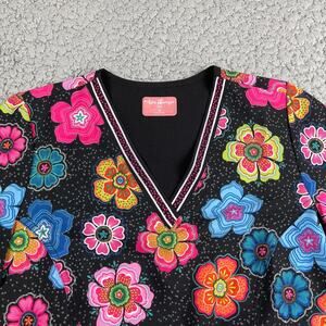 Ava Therese By Zavate Women's Scrub Top XS Colorful Floral Short Sleeve
