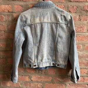 Stylish light blue denim jean jacket Classic fit. Perfect for casual wear.