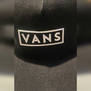 Vans Easy Box Snapback hat in black with a white logo. EUC