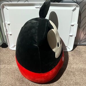 Adorable Mickey Mouse plush Squishmallow pillow. Features black, red, and cream colors. Perfect for Disney fans. Just been on display