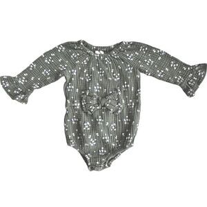 Grayson Mini Bundle of 2 Baby Girls Green & Cream Bow Bodysuit Onesie. 12 Months