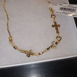 Heart and cross adjustable women's bracelet Gold cz . Brand new in box
