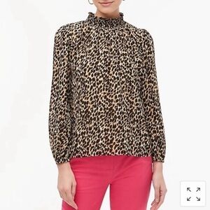 J. Crew Factory Smocked Neck Leopard Animal Print Top