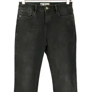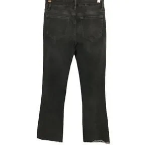 Free People Black Wash Dark Gray Raw Hem Straight Crop Jeans sz 27. Perfect all season cute jeans, crop style with raw hem, 5 pocket style, button/zip front center. Excellent like new condition!