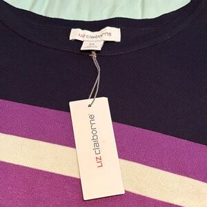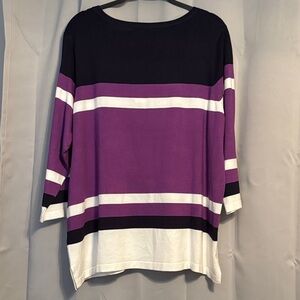 Liz Claiborne Purple and White Striped Long Sleeve Top 2X