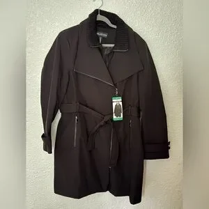 Water resistant winter trench coat with removable belt. Brand new. No flaws.