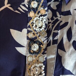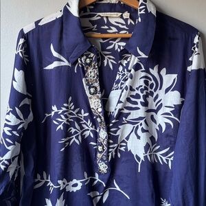 SOFT SURROUNDINGS Margaux Beaded Tunic Blouse Leaf Print Top Dress Bohemian