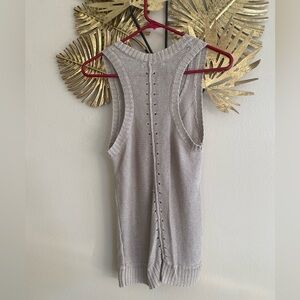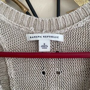 Elegant beige v-neck sweater vest. Perfect for stylish layering.