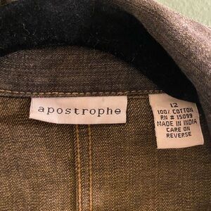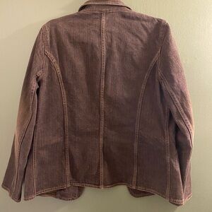 Black worn wash jean blazer with delicate floral embroidery.