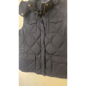 Keywords: Lands End vest, quilted vest, puffer vest, hooded vest, navy blue vest, women's vest, sleeveless jacket, outdoor vest, layering piece, fall fashion, winter essential, casual outerwear