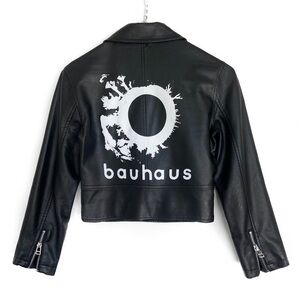 VINTAGE LIMITED EDITION: BAUHAUS (BAND) x NASTY GAL Cropped Faux Leather Moto Jacket: