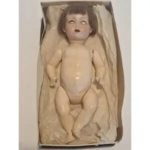 Condition Notes: Bisque head in good condition with intact paint and lashes; no cracks observed. Composition body shows age wear with some finger and toe loss. Original wig. Clothing in excellent condition overall; blanket shows color bleed. Been in storage for many, many years!