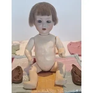 Antique German Bisque Head Doll Schoen Halbig S&H PB 4/0 w Clothing