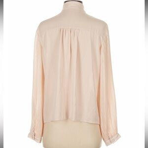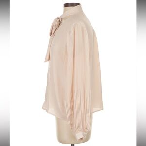This elegant Zara women's blouse features a stylish tie neck design with pleated sleeves. The soft blush color adds a touch of sophistication to any outfit. Perfect for both casual and formal occasions.
