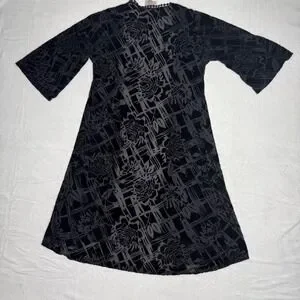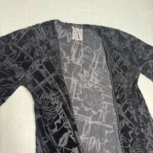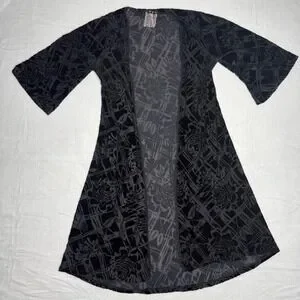Maeve Anthropologie Velvet Burnout Kimono Cardigan Black Rose Geometric Duster M