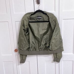 Edgy with a polished twist, this Express bomber jacket takes a classic silhouette and elevates it with lace-up grommet detailing along the front panels. The olive green color keeps it versatile and seasonless, while the bomber shape adds instant structure to any outfit.