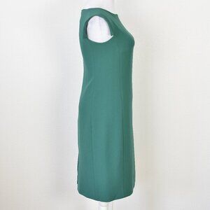 Cap sleeve. Boat neckline. Back zipper. Stretch, crepe material. Not lined. Hidden back zipper.