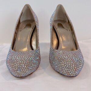LE SILLA Leather and rhinestone bling platform pumps size 37 7