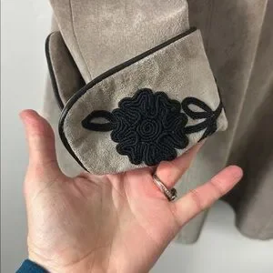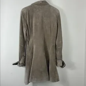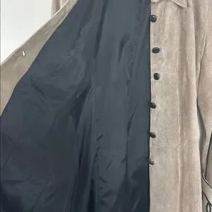 Char Santa Fe Vintage Taupe Tan & Black Long Suede Embroidered Button Up Coat 8