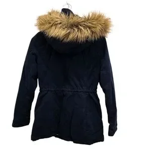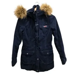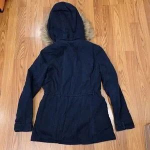 Hollister Y2K Navy Blue Hooded Utility Coat Sherpa Lined Jacket Women's Size M